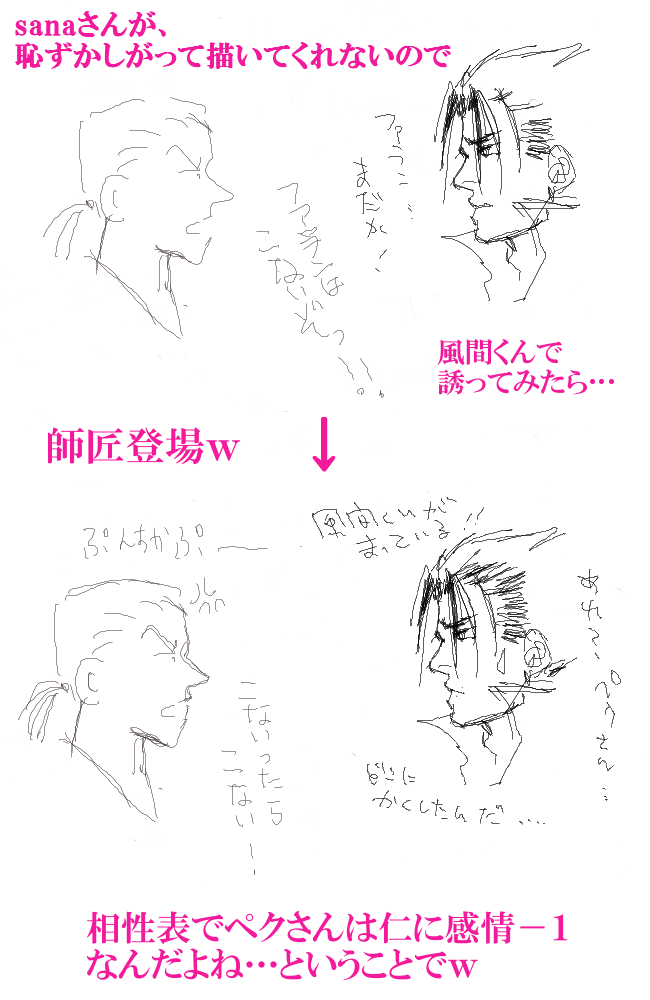 会話でヒートアップしてしまったので、ほとんど絵がないのですがsanaさんが描いてくださったしご許可も貰ったので記念にうpです^^