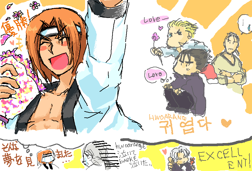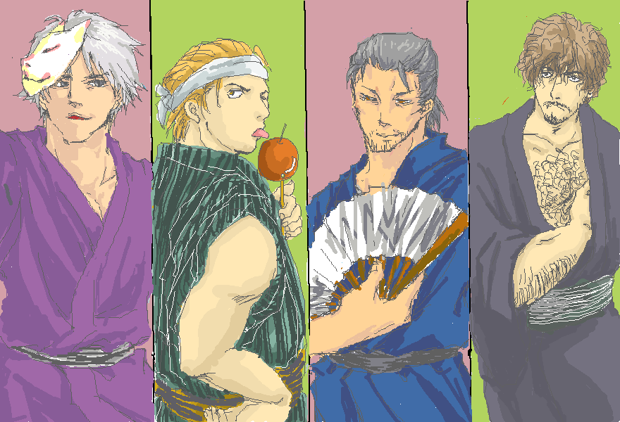 私の絵が間にあるのが申し訳ないんだけど、なんか ゆかた じゃね~だろそれみたいな(痛)ミゲルがどう見ても893ですよw
