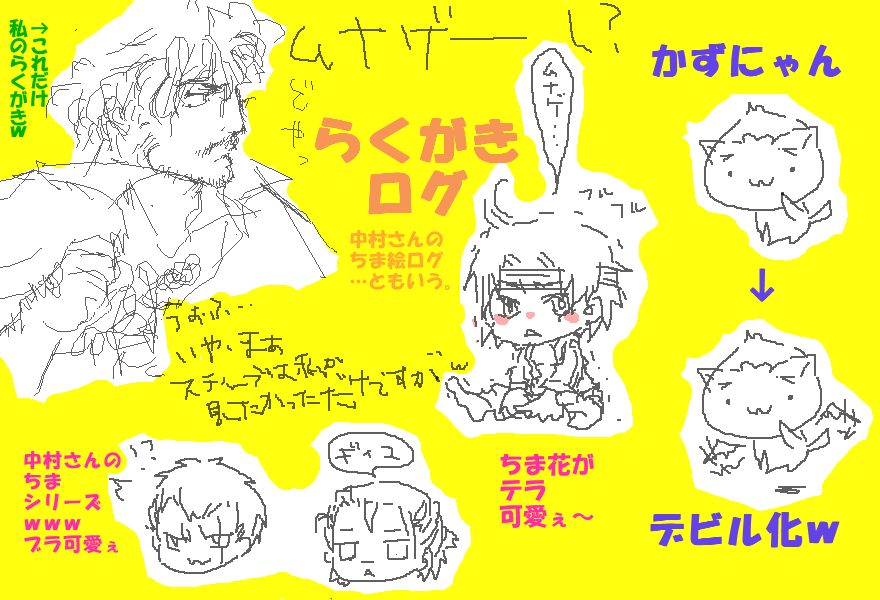 しかし、今回はほとんど文字チャ状態で語りまくってたので、間での中村さんの落書きが大量にゲットできてホクホクな私です^^